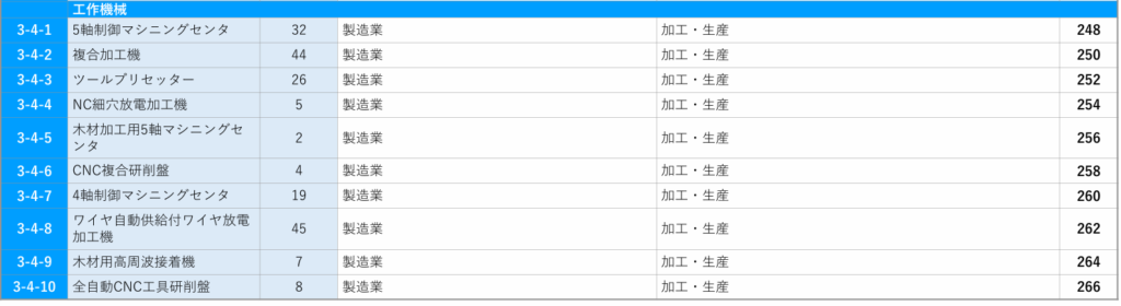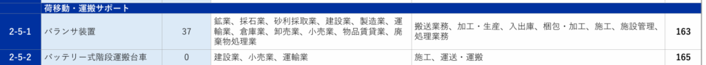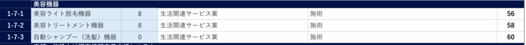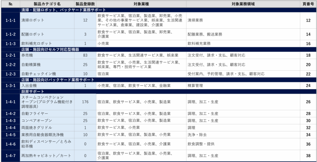 最後に、代表的な業種における補助対象商品リストを紹介しておきます。