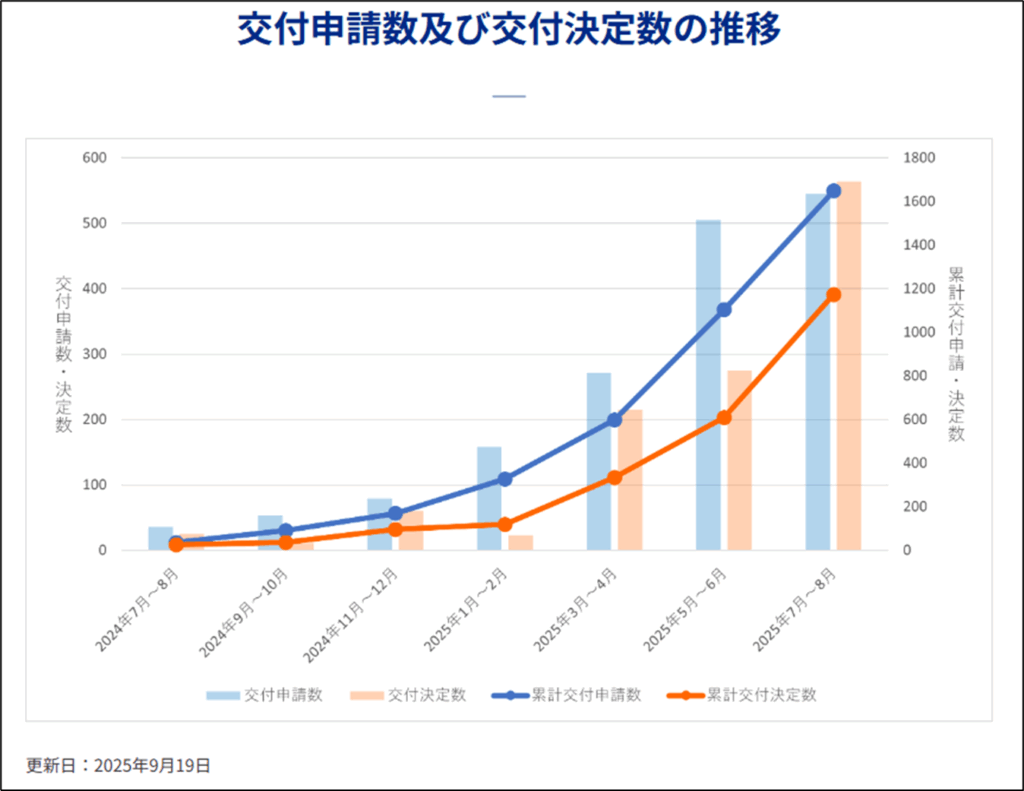 1)カタログ注文型の申請者数、採択率の推移(24年7月~25年8月)