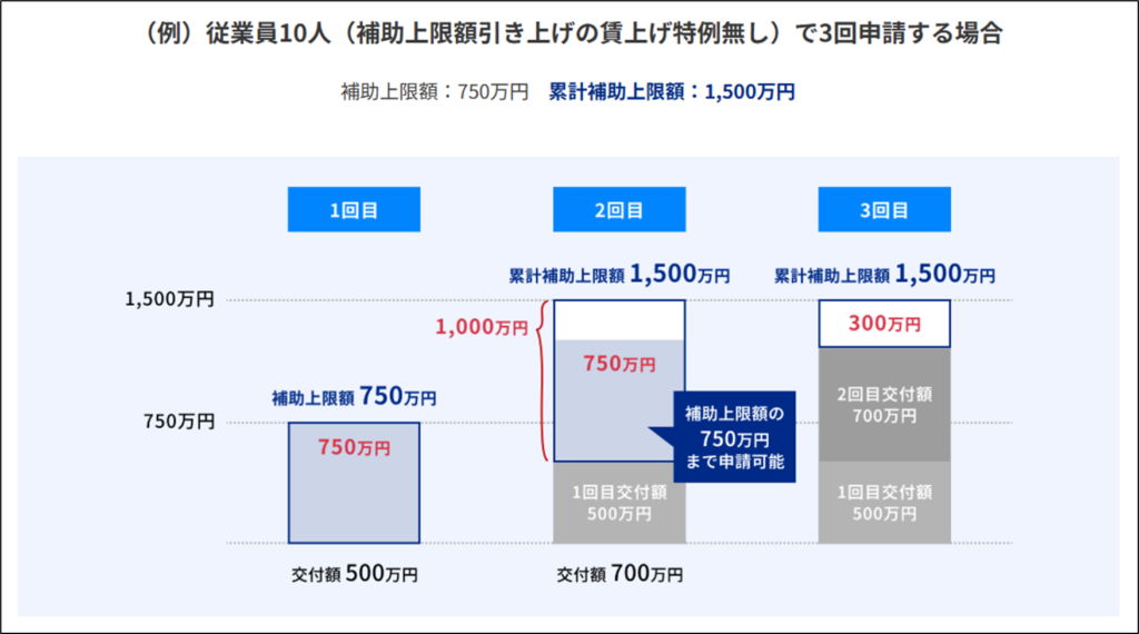 以下、複数回にわたって申請する場合の事例です。分かりやすいかと思います。