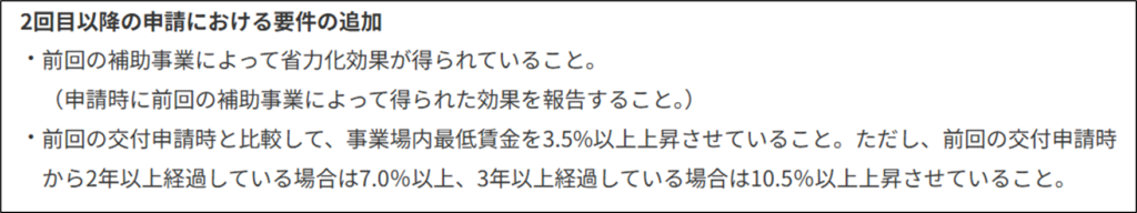 とはいえ、2回目以降の申請においては以下のような申請要件がありますので、ご注意ください。