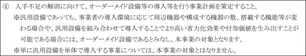 次回の第4回公募の締切は2月下旬と決定していますが(スケジュール(一般型)|中小企業省力化投資補助金)、来年に以下のような設備投資を計画されている事業者は、是非当補助金への申請を検討されてみては如何でしょうか?以下、公募要領からの抜粋です。